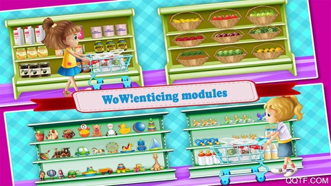 抓住购物车或购物篮,准备在宝宝超市协助爸爸妈妈购物,让我们一起开启这段欢乐的旅程吧!