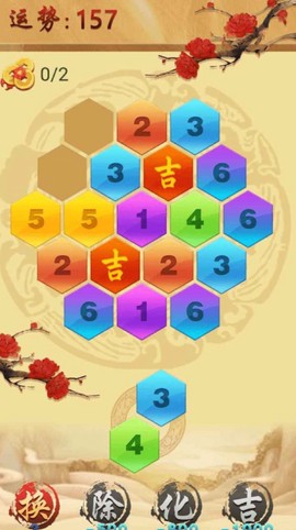 哥们儿!我得跟你安利这款六角消除大作战,它可不是那种老套的消除游戏——玩起来超上头,把数字消除和运势玄学结合得贼巧妙!你在六角棋盘里拼数字刷分,运势积分越高,奖励就拿得越多,简直是休闲解压的神器,一上手就停不下来。