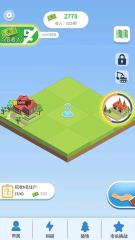 3、通过不断的合成升级,你的建筑会变得越来越豪华,带来的收益也水涨船高,形成一个极其良性的循环,推动着你的城市不断向前发展。