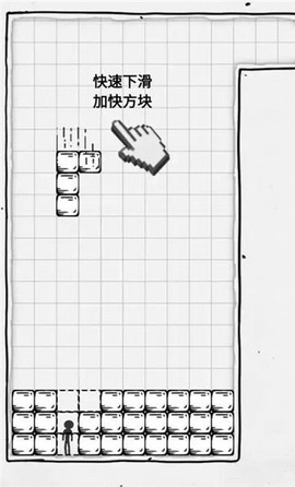 1. 基础操作遵循"拖拽-释放"机制,玩家需将底部生成的几何模块精准放置于目标区域,当任意区域填满率达100%时判定为通关失败。
