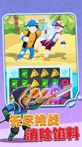 1、游戏提供薯片、披萨、甜甜圈等多样化零食作为消除元素,每种食物对应特定能量增益效果。角色设定涵盖海盗、牛仔枪手等不同形象,各自拥有专属战斗风格。