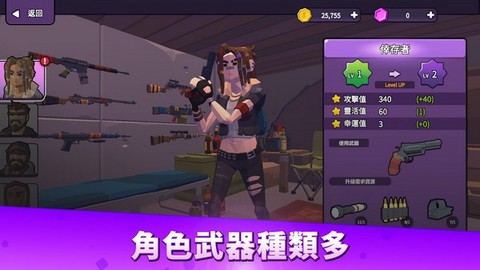 3. 角色选择上,各种各样的幸存者、修女甚至暴徒都在静待你的指挥,自由塑造你的战斗风格,感受极致的玩家体验。