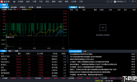 4、首页左上角显示的是上证指数、深证成指、沪深300、中小板及创业板的走势图,非常直观。
