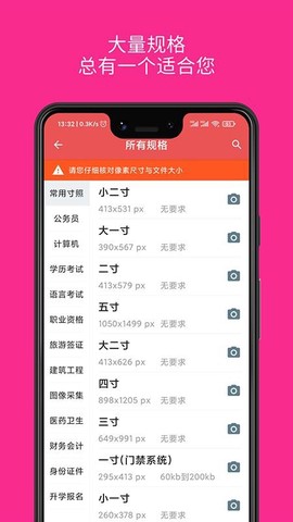 1. 规格库简直像开了挂,从常规的一寸二寸,到四六级、公考这些特殊需求,全部备齐,绝对满足你的各种“奇葩”要求。