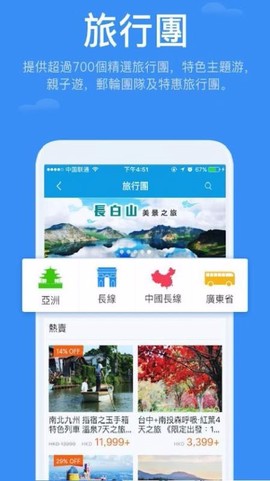 6、设有旅行团浏览板块,既可查看热卖产品,也能按出发城市进行筛选,方便选择。